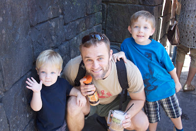 If we weren’t going to catch the midnight screening of HP7, why not just head down to the Wizarding World of Harry Potter? We had never been to Universal Studios, but after a little research, I learned there was a superhero area, a Dr. Seuss area, and enough other things I thought the boys would be interested in to warrant a trip. Plus, a few days before we left, I had the boys watch the first HP movie. I also read part of the first book to Will at bedtime. By the time we got to Hogsmeade, they were just as excited as we were (well, probably not just as excited, but almost). Of course, I had my obnoxious mom camera with me to get some pics (we have more, but I didn't want to show too much for those of you who will be going soon!).